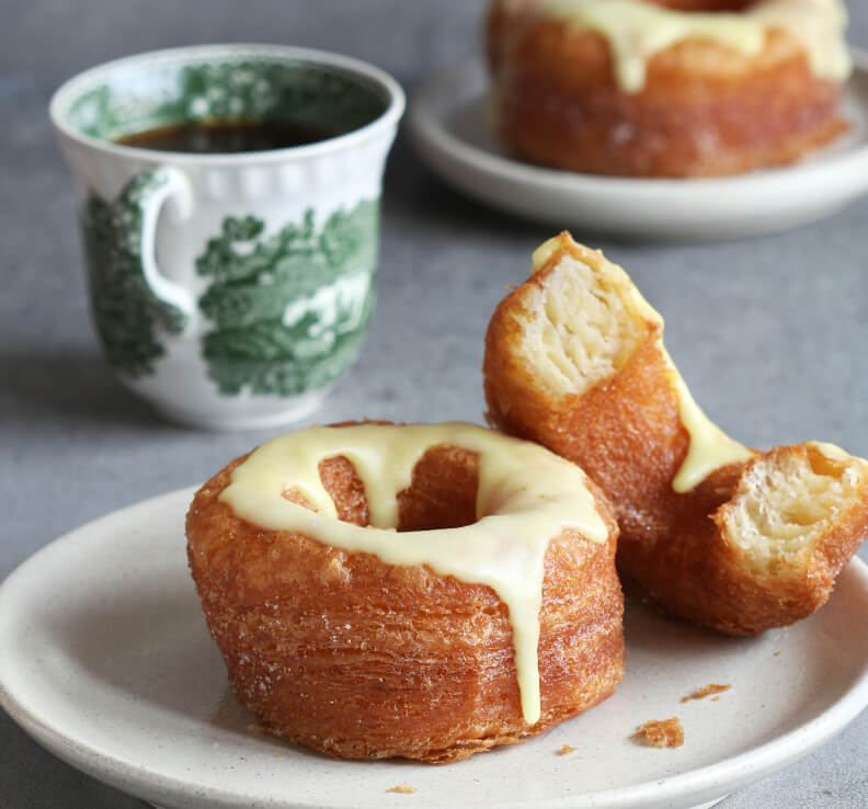 This hybrid of two bakery classics employs a basic croissant dough with its standard layers of butter.