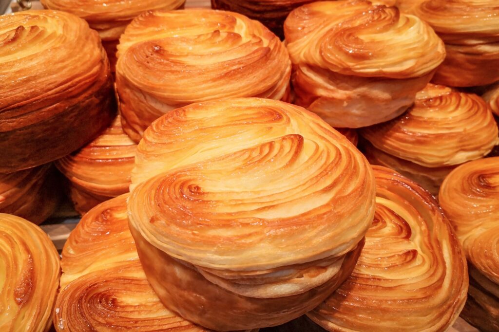 Also known as Hokkaido milk bread or Shokupan, Japanese milk bread has a milky-sweet flavour and a very soft and fluffy texture. It’s typically baked using the tangzhong (water roux) method, which keeps bread softer for longer compared to the standard bread-making method.